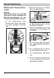 Transportsicherung Entfernen der Transportsicherungen 2. Beide Schlauchhalter mit kräftigem Ruck vom Gerät abziehen. Achtung! Bevor Sie das Gerät zum ersten Mal einschalten, müssen unbedingt die Sicherheitsvorrichtungen für den Transport wie folgt entfernt werden. 1. An der Geräterückseite beide Schlauchhalter öffnen und Schläuche sowie Netzkabel herausnehmen. 3. Die Schraube (D) mit Spezialschlüssel (A) herausschrauben und inkl. Druckfeder entnehmen. 4.