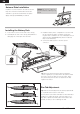 EN Antenna Tube Installation Install the receiver antenna in the tube as shown. Keep the end of the antenna above the boat’s waterline to get the best transmitter reception. Apply clear tape (DYNM0102), if desired. NOTICE: Do not cut or kink the receiver antenna or damage may result. Installing the Battery Pack 1. Loosen the 2 screws on the rear of the canopy. 2. Carefully lift the rear of the canopy and pull back to disengage the 2 front pins from the hull. 3. Install the battery in the compartment.