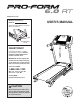 www.proform.com Model No. PFTL39511.0 Serial No. Write the serial number in the space above for reference. Serial Number Decal QUESTIONS? If you have questions, or if parts are damaged or missing, DO NOT CONTACT THE STORE; please contact Customer Care. IMPORTANT: Please register this product (see the limited warranty on the back cover of this manual) before contacting Customer Care. CALL TOLL-FREE: 1-888-533-1333 Mon.–Fri., 6 a.m.–6 p.m. MT Sat. 8 a.m.–4 p.m. MT ON THE WEB: www.proformservice.