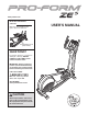www.proform.com Model No. PFEL70609.0 Serial No. Write the serial number in the space above for reference. Serial Number Decal (under frame) QUESTIONS? If you have questions, or if parts are damaged or missing, DO NOT CONTACT THE STORE; please contact Customer Care. IMPORTANT: Please register this product (see the limited warranty on the back cover of this manual) before contacting Customer Care. 1-888-533-1333 CALL TOLL-FREE: Mon.–Fri. 6 a.m.–6 p.m. MT Sat. 8 a.m.–4 p.m. MT ON THE WEB: www.