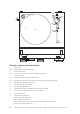 14 10 22 1 9 2 44 14 4 8 77 66 7 5 3 66 6 11 14 13 12 Controls, features and connections 1 Power switch 2/22 Stepped drive pulley and drive belt * 3 Platter with felt mat * 4/44 Tonearm counterweight * and counterweight support rod 5 Tonearm lift lever 6/66 Tonearm rest and removable transport locks 7/77 Tonearm tube with tonearm bearing housing and red coloured transport lock 8 Anti-skating weight adjustment scale 9 Anti-skating weight support hoop 10 Anti-skating weight w