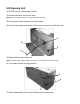 Ticket Roll Installation 1) Press the release buttons to open the Ticket Dispenser. 2) Remove the Ticket Roll Holder from dispenser 2 1 3) Insert the Ticket Roll Holder through the center of the Ticket Number Roll. 4) Insert the assembled roll back into the Ticket Dispenser. 5) Before closing dispenser, feed the ticket to the front of the dispenser mouth.