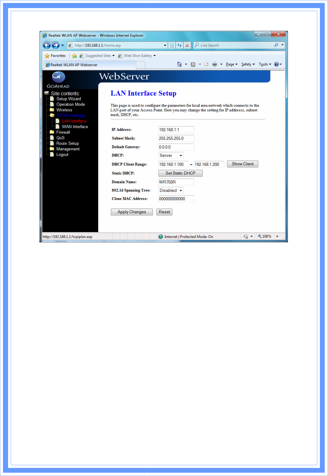 IP Address: Fill in the IP address of LAN interfaces of this WLAN Access Point. Subnet Mask: Fill in the subnet mask of LAN interfaces of this WLAN Access Point. Default Gateway: Fill in the default gateway for LAN interfaces out going data packets. DHCP: Click to select Disabled, Client or Server in different operation mode of wireless Access Point.