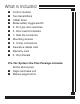 What Is Included n n n n n n n n n n n n Control module Two transmitters 128db Siren Brake safety toggle switch 3- Pin type door switches 3- Door switch brackets 1- Seal tite connector Mounting screws 3- Crimp connectors Insurance rebate card Warranty card 2- Vinyl Decals Pro-Tec System One Plus Package includes: All the above plus: n n Pager and base unit Manual page button