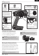 DE Senderkontrollen LENKTRIMMUNG GASTRIMMUNG STEUERRATE Mit der Gastrimmung justieren Sie die Neutralstellung des elektronischen Fahrtenreglers. Mit der Lenktrimmung justieren Sie den Geradeauslauf ohne Betätigung der Lenkung. Mit der Steuerrate stellen Sie die Größe des Lenkausschlages ein. LENKRAD REVERSE SCHALTER Ermöglicht das Reversieren (umdrehen) der Steuerrichtung (ST REV) und des Gaskanal (TH REV). Die Werkseinstellungen sind “N” für die Steuerung und “R” für Gas.