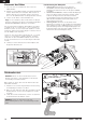 2 DE Zum Starten 1. Entfernen Sie die Kabinenhaube vom Rumpf. 2. Führen Sie die Antenne in das Antennenröhrchen ein. 3. Setzen Sie einen vollständig geladenen Akku in das Akkufach ein und sichern ihn mit der Klettschlaufe. 4. Schalten Sie den Sender ein. Versichern Sie sich dass das Gas nicht reversiert und die Gastrimmung auf Neutral ist. 5. Schließen Sie den Akku an den Regler (ESC) an. 6.
