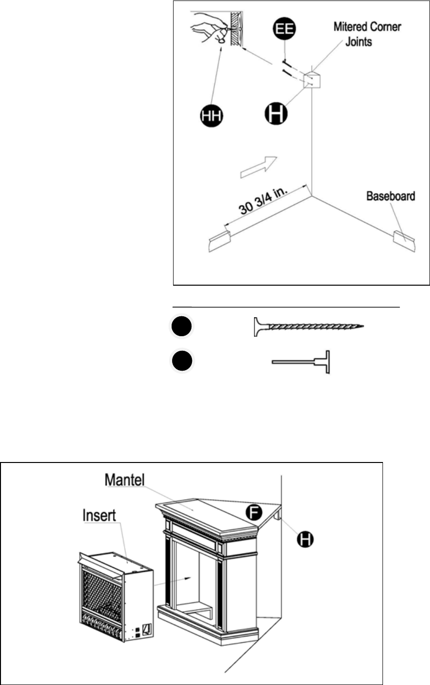 10. Push fireplace into corner so that the Top Triangle Panel (F) is resting on top of the Set Square Support (H) as