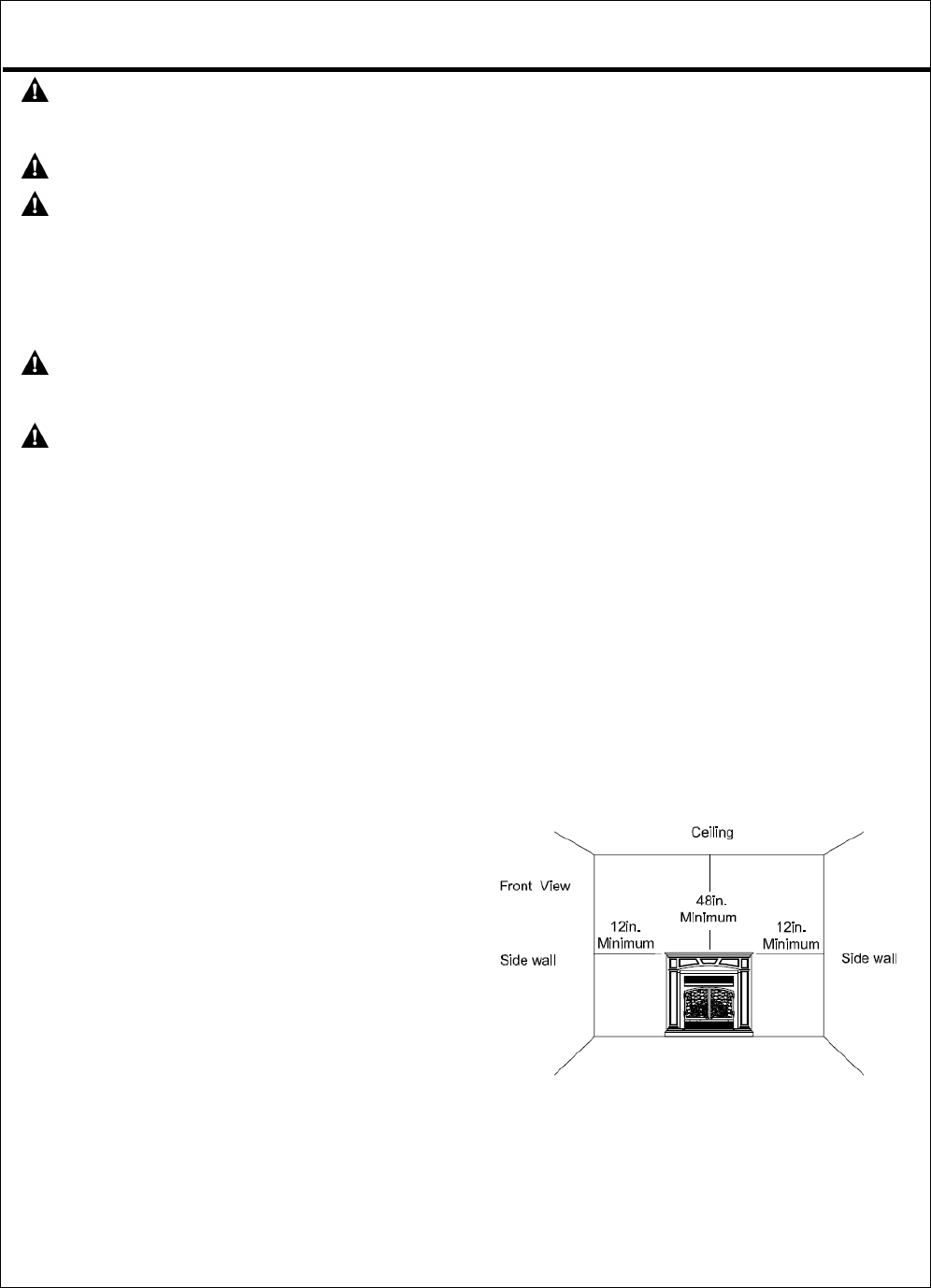 WARNING: Maintain the minimum clearances. If you can, provide greater clearances from floor, ceiling and adjoining