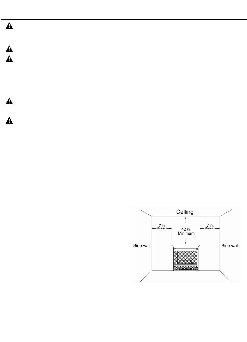 WARNING: Maintain the minimum clearances. If you can, provide greater clearances from floor, ceiling and adjoining