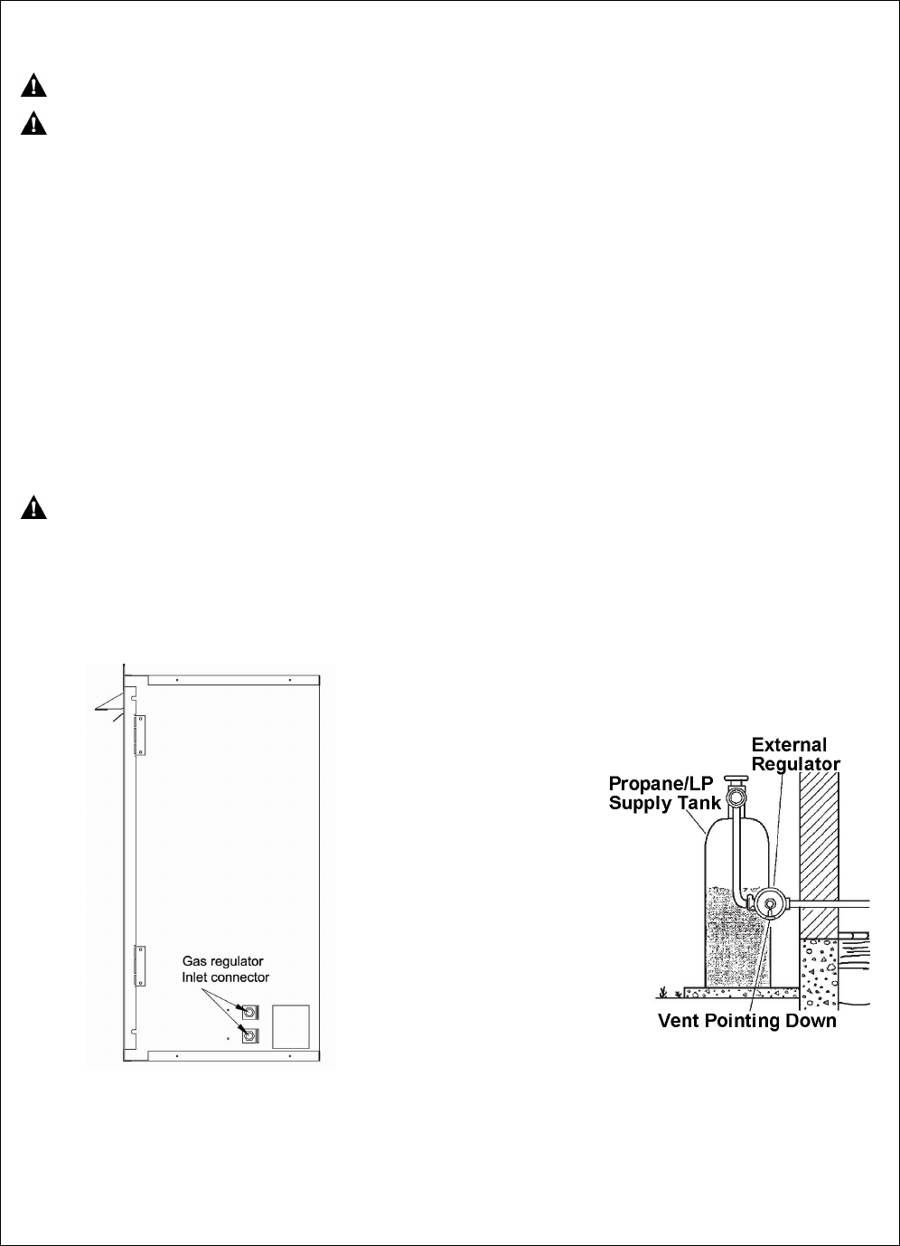 CAUTION: Never connect heater directly to the gas supply. This heater requires an external regulator (not