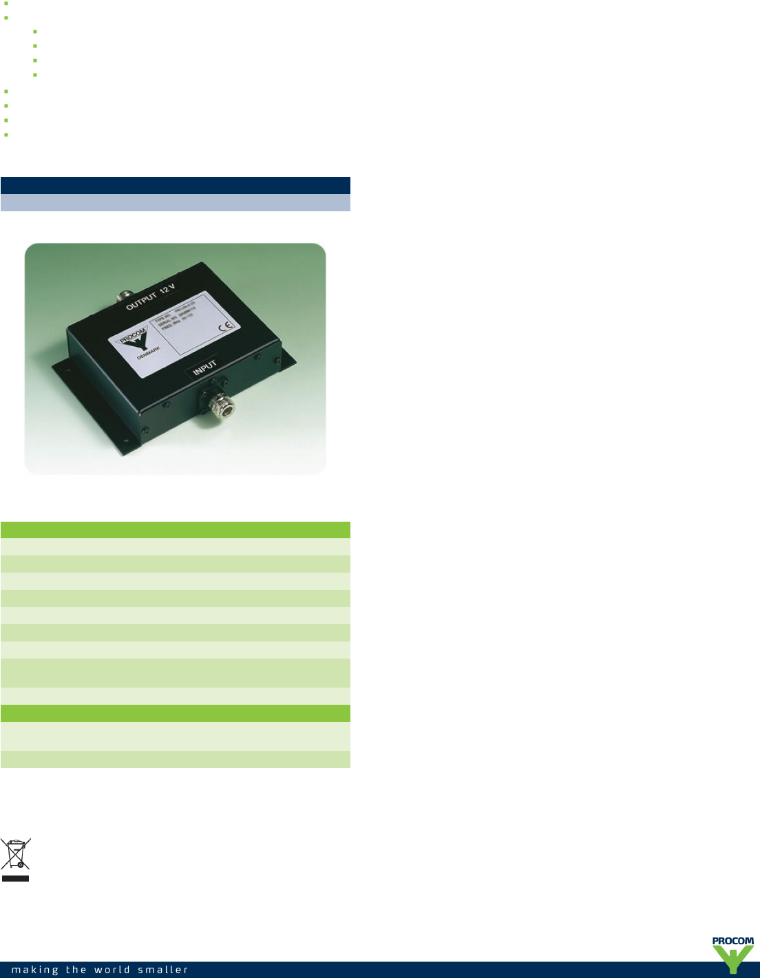 3rd ORDER INTERCEPT POINT > +15 dBm @ 15 dB gain
