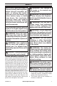 TROUBLESHOOTING Problem Possible Cause Corrective Action Slight smoke or odor 1. Residues from manufactur- 1. Problem will stop after a few during initial operation. ing process. hours of operation. Heater produces a whis- 1. Turning control knob to high 1. Turn control knob to low tling noise when burner position when burner is cold. position and let warm up for is lit. a minute. 2. Air in gas line. 2. Operate burner until air is removed from line. Have gas line checked by local gas supplier. 3.