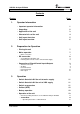 VOR/ILS Analyzer EVS200 Contents Contents Chapter 1. 2. Page Operator Information - Important operator information 1 - Unpacking 2 - Application of the unit 3 - Characteristics of the unit 4 - Unit layout frontview 5 - Unit layout rearview 6 Preparation for Operation - Placing the unit 7 - Mains operation 7 - Mains connection 7 - DC connection - 8 Assembling the FO Cable Jack Finishing and connection to the Vehicle Board Supply - Connection of Signal/Control Inputs/Outputs - 3.