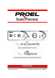 Proel Sound Processors User Manual Exaverb & Raptor Techincal Specifications Inputs: 2 Unbalanced (TS) ¼” (6.3mm.) jack Outputs: 2 Unbalanced (TS) ¼” (6.3mm.) jack Footswitch inputs **: 2 Unbalanced (TS) ¼” (6.3mm.) jack Max input level: 9 dBu Max output level: 9 dBu THD+N: <0.01% @ -6 dBFS (Bypass) Signal-to-Noise Ratio: >96 dBA (Bypass) Frequency Response 20Hz-20kHz +/- 0.