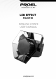 115 – 137 138 – 160 161 – 183 184 – 206 207 – 229 230 - 255 Automatico 5 Musicale 1 Musicale 2 Musicale 3 Musicale 4 Musicale 5 MANUTENZIONE Per mantenere elevata la qualità delle prestazioni di PLLED150, è fondamentale una pulizia regolare degli elementi dell’asse ottico, così come dei fori di aerazione e della ventola di raffreddamento. Importante! Polvere eccessiva, depositi di fumo ed altre scorie riducono le prestazioni e causano surriscaldamento. Questo tipo di danni non è coperto da garanzia.