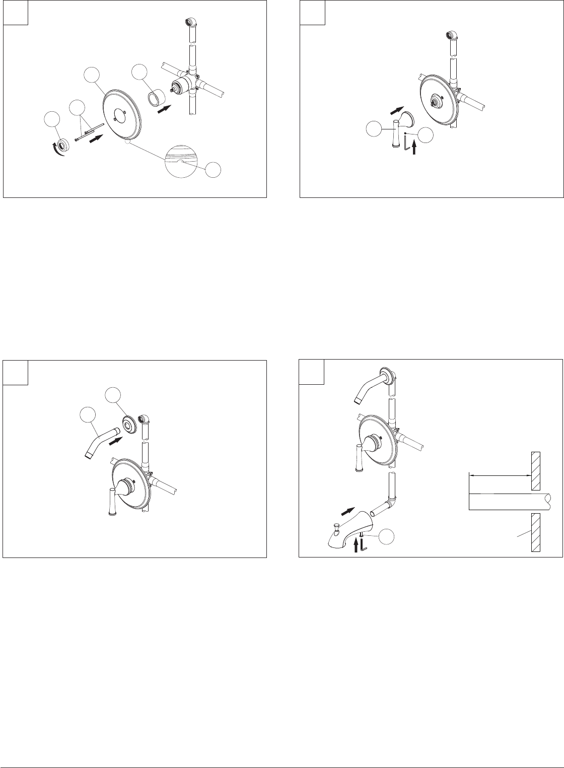 The stub-out pipe is to project 1-7/16'' to 3'' from the finished wall. Install tub spout.