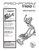 BEFORE YOU BEGIN manual. To help us assist you, note the product model number and serial number before contacting us. The model number and the location of the serial number decal are shown on the front cover of this manual. Thank you for selecting the revolutionary PROFORM® 1100 E elliptical. The 1100 E elliptical provides an impressive selection of features designed to make your workouts at home more effective and enjoyable. For your benefit, read this manual carefully before you use the elliptical.