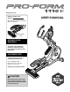 www.proform.com Model No. PFEL10112.2 Serial No. Write the serial number in the space above for reference. Serial Number Decal ACTIVATE YOUR WARRANTY To register your product and activate your warranty today, go to www.proformservice.com/ registration. CUSTOMER CARE For service at any time, go to www.proformservice.com. Or call 1-888-533-1333 Mon.–Fri. 6 a.m.–6 p.m. MT Sat. 8 a.m.–4 p.m. MT Please do not contact the store.