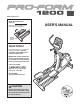 www.proform.com Model No. PFEL01210.0 Serial No. Write the serial number in the space above for reference. Serial Number Decal QUESTIONS? If you have questions, or if parts are damaged or missing, DO NOT CONTACT THE STORE; please contact Customer Care. IMPORTANT: Please register this product (see the limited warranty on the back cover of this manual) before contacting Customer Care. 1-888-533-1333 CALL TOLL-FREE: Mon.–Fri., 6 a.m.–6 p.m. MT Sat. 8 a.m.–4 p.m. MT ON THE WEB: www.proformservice.