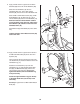 HOW TO USE A HEART RATE WORKOUT 4. Hold the handgrip pulse sensor or put on the optional chest pulse sensor. 1. Begin pedaling to activate the console. To use a heart rate program, you must use the handgrip pulse sensor or wear the optional chest pulse sensor (see page 20). Note: If you hold the handgrip pulse sensor and wear the chest pulse sensor at the same time, the console will not display your heart rate accurately. The elliptical requires no batteries or external power source.