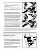6. Press a CD Holder (85) into each side of the Upright Base (97). If the Wheels (not shown) are touching the floor, or if the treadmill rocks slightly, see HOW TO LEVEL THE TREADMILL on page 20. 6 84 85 85 97 86 80 If you wish to adjust the height of the Uprights (80, 84), go to step 7. If the Uprights are at the desired height, tighten the four Upright Bolts (86) and go to step 8. 97 86 7. Note: The Uprights (80, 84) can be attached at three different heights.