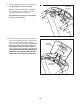 . Insert the wires from the console assembly into the handrail assembly. Attach the console assembly to the handrail assembly with four 1/4" x 3/4" Bolts (5). Be careful not to pinch the wires. 11 Handrail Assembly Console Assembly Wires 5 12. Plug in the power cord (see page 13) and insert the key into the console. Press the Incline decrease button on the console until the incline reaches the minimum incline level. Remove the key and unplug the power cord.