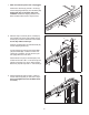 9. Set the handrail assembly on the Uprights (74, 78). Be careful not to pinch the wires. 9 Attach the handrail assembly to the Uprights (74, 78) with six 5/16" x 1" Bolts (7) and six 5/16" Star Washers (10) as shown. See assembly steps 5 and 7. Firmly tighten the 3/8" x 4 1/2" Bolts (6). Handrail Assembly 7 10 10 74 7 7 10 7 10. Have a second person hold the console assembly near the handrail assembly. Connect the two wires from the console assembly to the two wires from the handrail assembly.