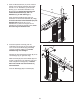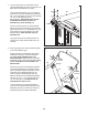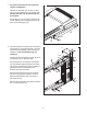 . Plaats het bedieningspaneel (D) met hulp van een tweede persoon, naast de Rechter Staander (85) en de Linker Staander (niet afgebeeld). Plaats de Draad van de Staander (87) in het gat aan de onderkant van de Rechter handleuning en het eruit zoals afgebeeld. 13 Uitsparing Verbind de Draad van de Staander (87) met de draad van het bedieningspaneel (F). Raadpleeg de inzet-tekening. De connectoren zouden makkelijk samen moeten glijden en op hun plaats moeten klikken.