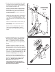 COMMENT DÉPLACER L’ELLIPTIQUE COMMENT S’ENTRAÎNER SUR L’ELLIPTIQUE Pour déplacer l’elliptique, pliez-le tout d’abord comme décrit page 14. Ensuite, placez-vous l’elliptique, tenez le montant et placez un pied contre une des roulettes. Tirez le montant jusqu’à ce que l’elliptique commence à se déplacer sur les roulettes. Avec l’aide d’une autre personne, déplacez avec précaution l’elliptique vers l’endroit voulu, puis abaissez-le jusqu’au sol.