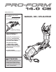 www.proform.com Nº. du Modèle PFEL18010.2 Nº. de Série Écrivez le numéro de série sur la ligne ci-dessus pour référence. Autocollant du Numéro de Série (sous le cadre) QUESTIONS ? Si vous avez des questions ou si des pièces sont endommagées ou manquantes, VEUILLEZ NOUS CONTACTER AU SERVICE À LA CLIENTÈLE DIRECTEMENT. APPUYEZ SANS FRAIS : 1-888-936-4266 du lundi au vendredi de 7h30 à 16h30, heure de l’est (exceptés les jours fériés) OU PAR COURRIEL : customerservice@iconcanada.