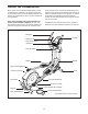 COMMENT DÉPLACER LE VÉLO ELLIPTIQUE COMMENT PRATIQUER DES EXERCICES SUR LE VÉLO ELLIPTIQUE Pour déplacer le vélo elliptique, dépliez d’abord celuici comme décrit à la page 14. Ensuite, tenez-vous debout devant le vélo elliptique, tenez fermement le montant, et placez un pied contre l’une des roues. Tirez le montant jusqu’à ce que le vélo elliptique commence à rouler sur les roues.