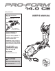 BEFORE YOU BEGIN manual. To help us assist you, note the product model number and serial number before contacting us. The model number and the location of the serial number decal are shown on the front cover of this manual. Thank you for selecting the revolutionary PROFORM® 14.0 CE elliptical. The 14.0 CE elliptical provides an impressive selection of features designed to make your workouts at home more effective and enjoyable. For your benefit, read this manual carefully before you use the elliptical.