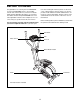Increase Button Decrease Button HOW TO USE THE CONSOLE The lower right display can show your pedaling speed (in revolutions per minute) and the approximate number of calories you have burned. When you use the handgrip pulse sensor, the lower right display will also show your heart rate (see step 4 on page 11). 1. Turn on the console. Note: The console requires four 1.5V “D” batteries (see assembly step 3 on page 6). If there is a sheet of clear plastic on the face of the console, peel off the plastic.