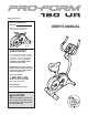BEFORE YOU BEGIN after reading this manual, please see the front cover of this manual. To help us assist you, note the product model number and serial number before contacting us. The model number and the location of the serial number decal are shown on the front cover of this manual. Thank you for selecting the revolutionary PROFORM® 180 UR exercise cycle. Cycling is an effective exercise for increasing cardiovascular fitness, building endurance, and toning the body.