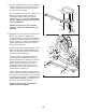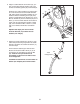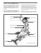 COMMENT UTILISER LʼAPPAREIL ELLIPTIQUE COMMENT DÉPLACER LʼAPPAREIL ELLIPTIQUE Étant donné la taille et le poids importants de lʼappareil elliptique, deux personnes sont nécessaires pour le déplacer. Placez-vous devant lʼappareil elliptique, tenez le montant puis placez un pied contre une des roues avant. Tirez le montant et demandez à lʼautre personne de soulever la base jusquʼà ce que lʼappareil elliptique soit en mesure de rouler sur les roues avant.