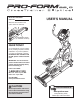 BEFORE YOU BEGIN Thank you for selecting the revolutionary PROFORM® 22.0 CROSSTRAINER elliptical exerciser. The 22.0 CROSSTRAINER elliptical exerciser provides a wide array of features designed to make your workouts at home more effective and enjoyable. tacting us. The model number and the location of the serial number decal are shown on the front cover of this manual. To avoid a registration fee for any service needed under warranty, you must register the elliptical exerciser at www.proformservice.