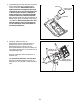 HOE DE BAND BIJ TE STELLEN Draai vervolgens de twee 3/8" Moeren (27) los. Het Vliegwiel (37) heeft een Moer aan beiden kanten. Draai dan de M6 Slotmoeren (32) aan elke kan van het Vliegwiel vast totdat de Riem (35) stevig vast zit. Als u de pedalen voelt slippen bij het fietsen, ook al staat de weerstand op het hoogste niveau, dan moet u waarschijnlijk de drijfriem bijstellen. Om de band af te stellen moet u de pedalen en de schermen eraf halen. Gebruik een stelsleutel om de pedalen te verwijderen.