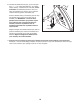 ENTRETIEN ET LOCALISATION D'UN PROBLÈME Inspectez et serrez toutes les pièces du vélo d'exercice régulièrement. Remplacez immédiatement toute pièce usée. Ensuite, localisez le Capteur Magnétique (43). Tournez le Pédalier (21) jusquʼà ce que lʼAimant (38) soit aligné avec le Capteur Magnétique. Dévissez mais ne retirez pas la Vis de M4 x 16mm (49) indiquée. Glissez le Capteur Magnétique légèrement plus près ou plus loin de lʼAimant. Ensuite, resserrez la Vis.