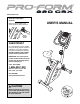 www.proform.com Model No. PFEX71608.1 Serial No. Write the serial number in the space above for future reference. Serial Number Decal QUESTIONS? As a manufacturer, we are committed to providing complete customer satisfaction. If you have questions, or if parts are damaged or missing, DO NOT CONTACT THE STORE; please contact Customer Care. IMPORTANT: You must note the product model number and serial number (see the drawing above) before contacting us: 1-888-533-1333 CALL TOLL-FREE: Mon.–Fri. 6 a.m.
