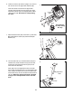 . Attach the Seat (12) to the Seat Post (5) with four M8 Nylon Locknuts (10) and four M8 Split Washers (41). Note: The Nylon Locknuts and the Split Washers may be preattached to the underside of the Seat. 9 12 5 41 41 10 10. Identify the Left Pedal (24), which is marked with an “L.” Using an adjustable wrench, firmly tighten the Left Pedal counterclockwise into the left arm of the Crank (21). Tighten the Right Pedal (not shown) clockwise into the right arm of the Crank.