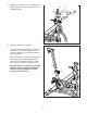 5. Attach the Handlebar (5) to the Handlebar Post (4) with two M10 x 25mm Screws (34) and two M10 Washers (33). 5 33 6. Orient the Seat Post (2) as shown. 34 5 4 6 Locate the Adjustment Knob (23) on the rear of the Frame (1). Loosen the Adjustment Knob and pull it outward. Then, insert the Seat Post (2) into the Frame. Move the Seat Post (2) upward or downward to the desired position, release the Adjustment Knob (23) into an adjustment hole in the Seat Post, and then tighten the Adjustment Knob.