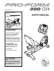 BEFORE YOU BEGIN Thank you for selecting the revolutionary PROFORM® 300 CR exercise bike. Cycling is an effective exercise for increasing cardiovascular fitness, building endurance, and toning the body. The 300 CR exercise bike provides an impressive selection of features designed to make your workouts at home more effective and enjoyable. after reading this manual, please see the front cover of this manual. To help us assist you, note the product model number and serial number before contacting us.