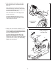 10. Plug the Pulse Wire (58) into the Pulse Receptacle (79) located in the Left Shield (26). 10 79 58 26 11. Identify the Right Pedal (21), which is marked with an “R.” Using an adjustable wrench, firmly tighten the Right Pedal clockwise into the Right Crank (23). 11 Tighten the Left Pedal (not shown) counterclockwise into the Left Crank (not shown). 23 21 Strap Tab Adjust the strap on the Right Pedal (21) to the desired position, and press the ends of the strap onto the tab on the Right Pedal.