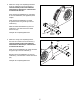 HOE DE AANDRIJFRIEM BIJ TE STELLEN Draai de rechter Pedaalschijf (17) naar rechts om het los te maken van het Rechterscherm (10). Haal dan voorzichtig de Linkerpedaalschijf van de Rechtercrankarm (19). De aandrijfriem moeten bijgesteld worden wanneer de pedalen tijdens het stappen slippen, ook wanneer de weerstand op de hoogste stand bijgesteld is.