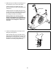 . Steek het Stroomadapter (67) in de aansluiting op het onderstel van de trainingsfiets. Steek, indien nodig, de Stroomadapter (67) in de Stekkeradapter (A). Aandacht: zie HOE DE STROOMADAPTER IN TE STEKEN op bladzijde 13 om de Stroomadapter (67) in een stopcontact te steken. 12 A 67 13. Nadat de trainingsfiets is gemonteerd, controleert u of deze juist is gemonteerd en goed werkt. Zorg ervoor dat alle onderdelen van de trainingsfiets goed vastgedraaid worden.