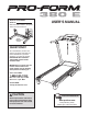 BEFORE YOU BEGIN Thank you for selecting the new PROFORM® 380 E treadmill. The 380 E treadmill offers a selection of features designed to make your workouts at home more effective. And when youʼre not exercising, the unique treadmill can be folded up, requiring less than half the floor space of other treadmills. model number and serial number before contacting us. The model number and the location of the serial number decal are shown on the front cover of this manual.
