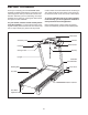23. Inspect and properly tighten all parts of the treadmill regularly. 19. Never leave the treadmill unattended while it is running. Always remove the key, unplug the power cord, and switch the reset/off circuit breaker to the off position when the treadmill is not in use. (See the drawing on page 5 for the location of the circuit breaker.) 24. 20. Do not attempt to raise, lower, or move the treadmill until it is properly assembled.