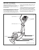 MAINTENANCE AND TROUBLESHOOTING Inspect and tighten all parts of the elliptical exerciser regularly. Replace any worn parts immediately. until the console displays correct feedback. When the Reed Switch is correctly adjusted, reattach the shields. Note: If you have questions as to which screw should be in which hole, see EXPLODED DRAWING B on page 23 and the PART LIST on page 20. To clean the elliptical exerciser, use a damp cloth and a small amount of mild soap.