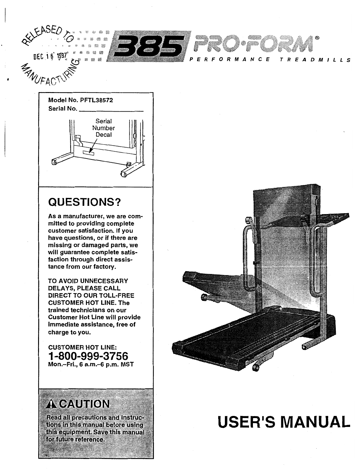 ProForm 385 PERFORMANCE TREADMILL (No. PFTL38572)