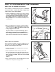 HOW TO LOWER THE TREADMILL FOR USE 1. Hold the upper end of the treadmill with your right hand as shown. Using your left thumb, press the storage latch and hold it. Pivot the treadmill until the frame and foot rail are past the storage latch. Storage Latch Unlatched 2. Hold the treadmill firmly with both hands, and lower the treadmill to the floor. To decrease the possibility of injury, bend your legs and keep your back straight.